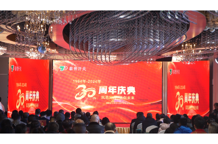 踏入会场,华灯闪耀,气氛庄重而热烈。“泰普开关30周年庆典”的巨型主题背景墙,在灯光的映照下熠熠生辉,与鲜艳的红色地毯相互映衬,仿佛在诉说着泰普公司三十年来的辉煌与荣耀。